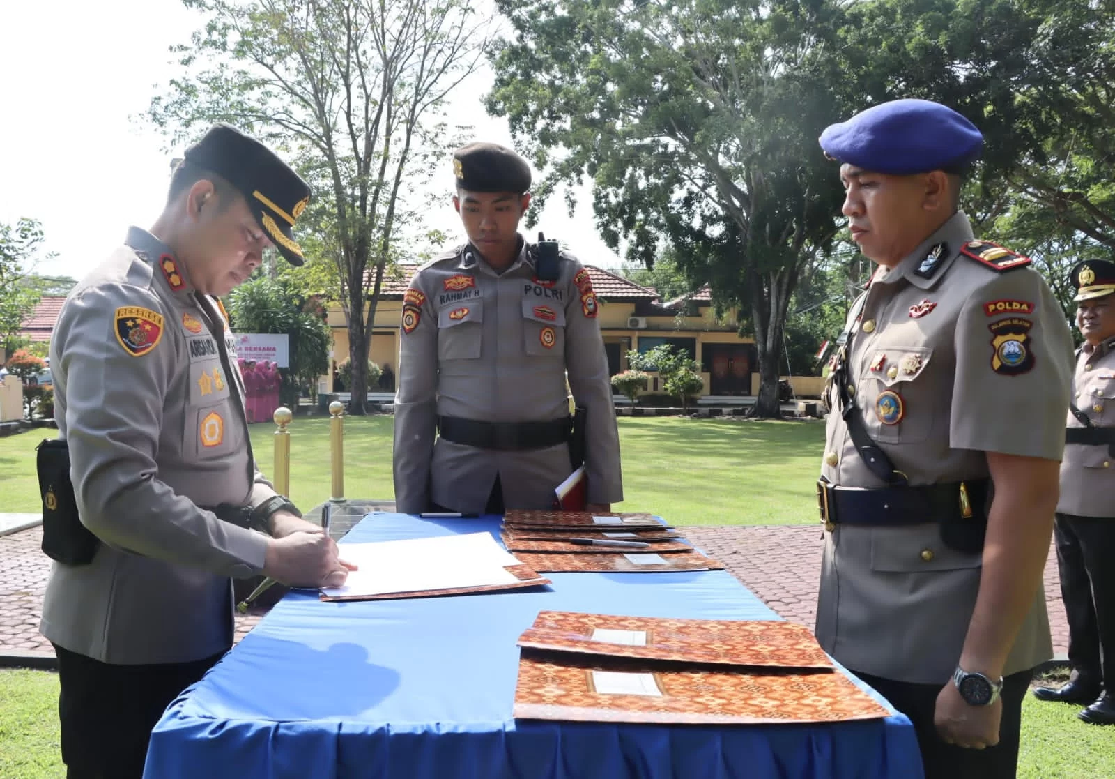 Adapun pejabat yang melaksanakan serah terima jabatan yaitu Wakapolres, Kasat Reskrim, Kapolsek Bupon, Kapolsek Bua dan Kapolsek Bastem Polres Luwu. Sedangkan pejabat utama yang dilantik yaitu Kasat Binmas, Kapolsek Suli dan Kasatpolairud Polres Luwu.