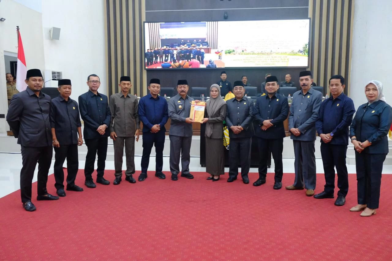 Acara penyerahan Rancangan Peraturan Daerah Rencana Pembangunan Jangka Panjang Daerah tahun 2025-2045 pada Rapat Paripurna di ruang Rapat Paripurna Kantor DPRD Kabupaten Gowa, Senin (12/8/2024).