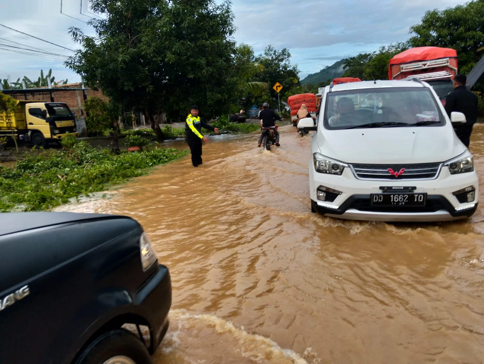 Tanggap terhadap situasi darurat tersebut, Polres Luwu melalui jajaran Polsek Larompong dan unit Satuan Lalu Lintas langsung bergerak cepat melakukan evakuasi warga serta pengaturan arus lalu lintas di titik-titik terdampak.