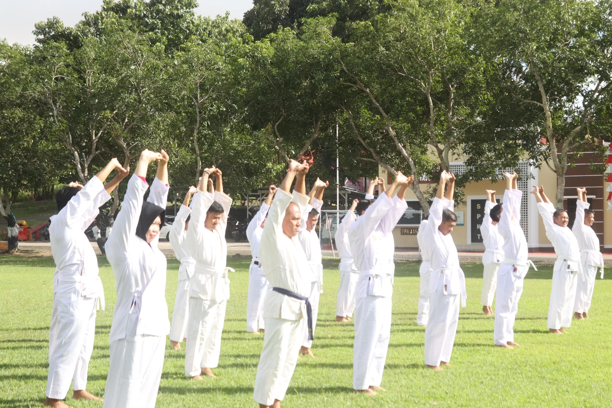 IMN, WAJO– Personel Polres Wajo mengikuti kegiatan Tes Kesamaptaan Jasmani dan Beladiri Polri berkala di halaman Mapolres Wajo, Jum’at (9/8/2024).