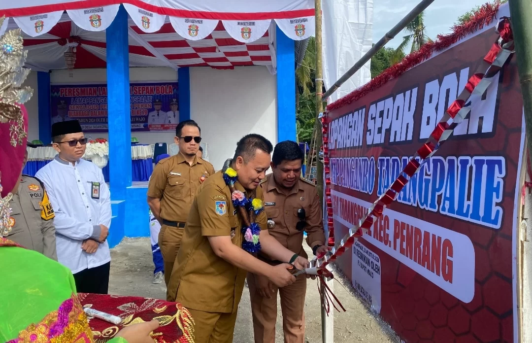 Pj.Bupari Wajo Andi Bataralipu meresmikan Lapangan Sepak Bola Tadangpalie, Kecamatan Penrang. HadirPlt. Kepala Dinas Pemuda, Olahraga dan Pariwisata Kabupaten Wajo yang juga Asiten III Setda Wajo Muhammad Ilyas, Camat Penrang, dan Forkopimcam Penrang.